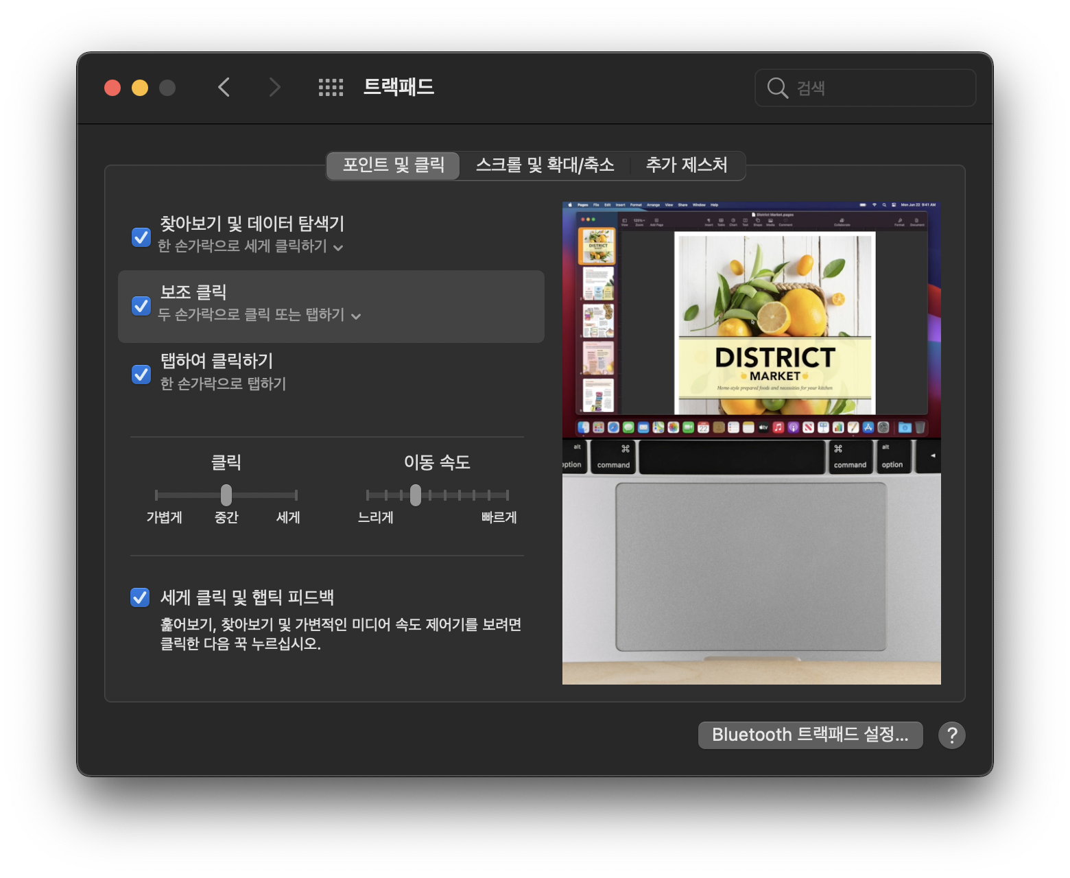 포인터 제어기 - 마우스와 트랙패드 - 트랙패드 옵션…