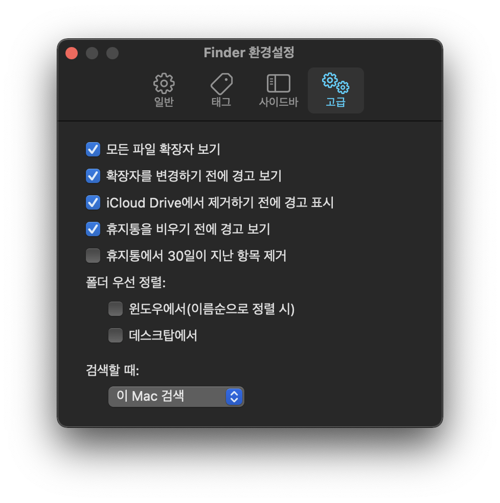 9. Finder - 환경설정… - 고급