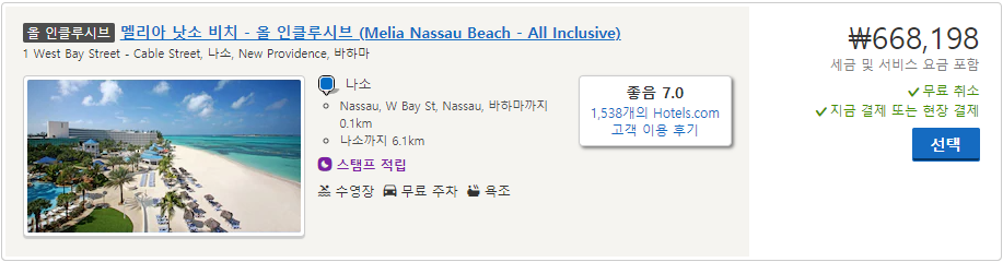 All-Inclusive Resort 는 샌달스 로얄 바하미안이 가장 좋다는 평이 많았지만, 가격이 너무 사악해서.. 평도 괜찮고 적당히 마음에 들었던 멜리아 낫소를 갈까 고민하다가 어차피 적은 돈을 들이는 것도 아닌데 미련을 남기지 말고 오자며 샌달스 로얄 바하미안에서 돈의 맛을 느끼고 오기로 결정했다. (점점 예산이.. ㅠㅠ)