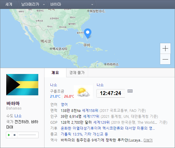 미국과 직접 국경선을 대고 있는 나라인 멕시코와 캐나다를 제외하면 미국과 가장 가까이에 있는 나라로, 그림같은 해변과 풍광 덕분에 미국인의 고급 여름휴양지로 인식된다. 또한 조세 피난처(Tax Haven)로도 유명하다.