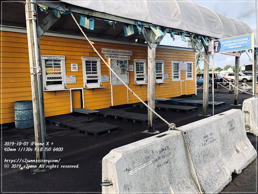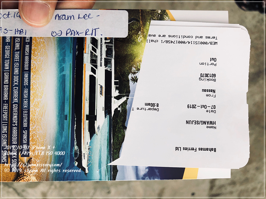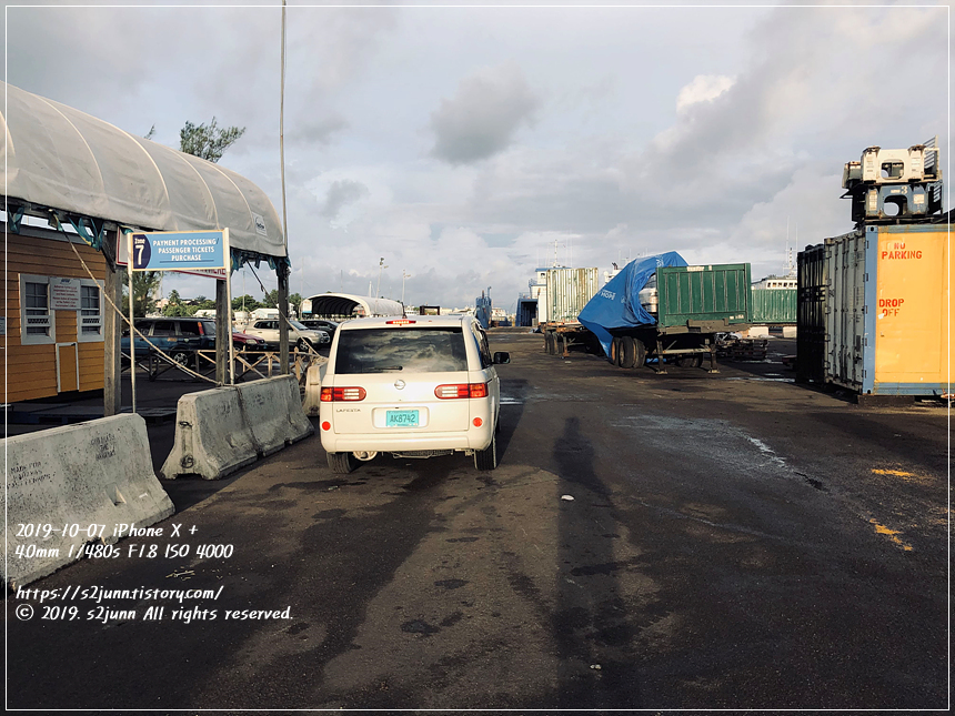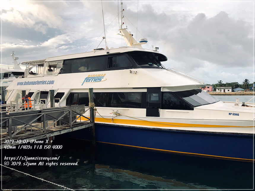조식을 마치고 택시를 불러 Potter's Cay Fast Ferries 로 갔다. (택시비 $16 + 팁 $1 = $17)